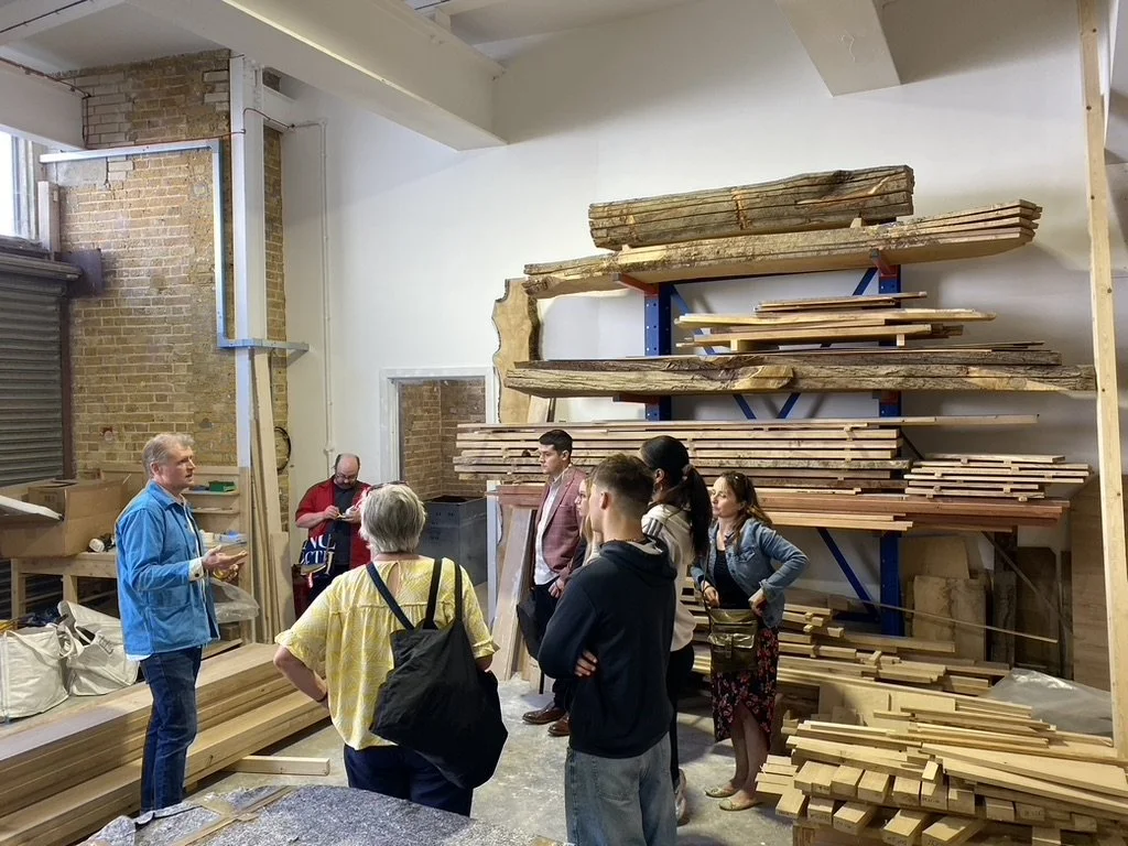 The tour of the Sebastian Cox workshop, studio and showroom as part of the second workshop – Be the change you want to see: Making climate action happen.